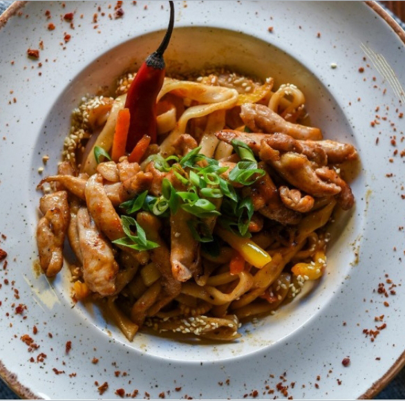 (200g pilećeg filea, chilli sos, pekarski krompir, salata)