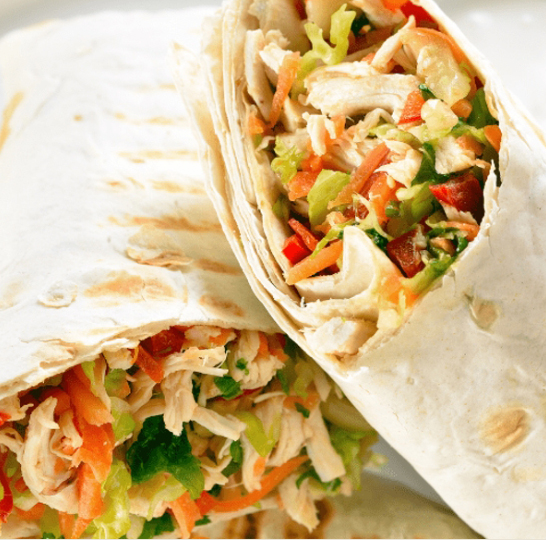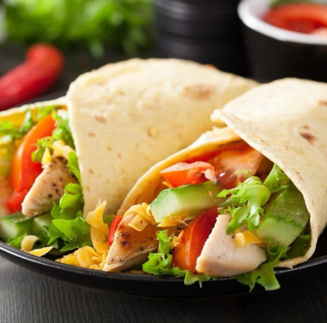 (200g pilećeg filea na kockice, sos, salata, kukuruz)