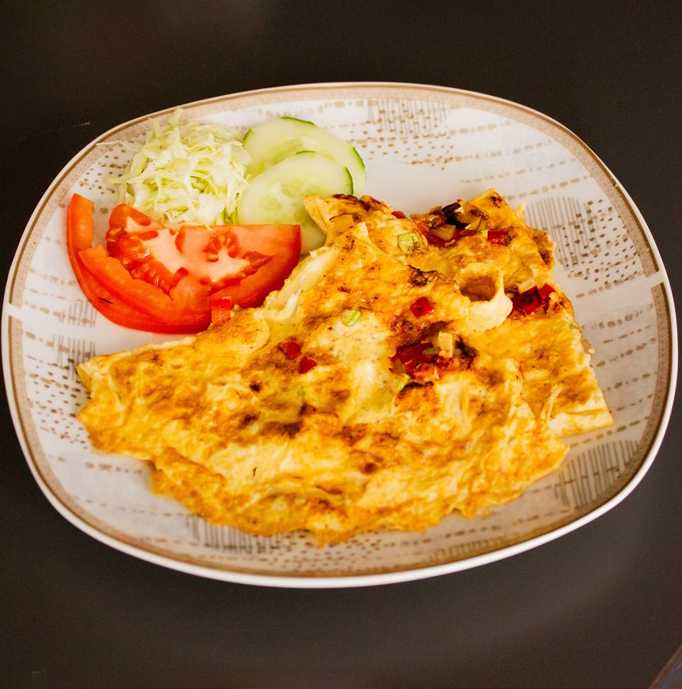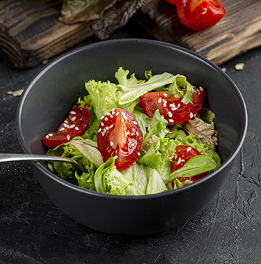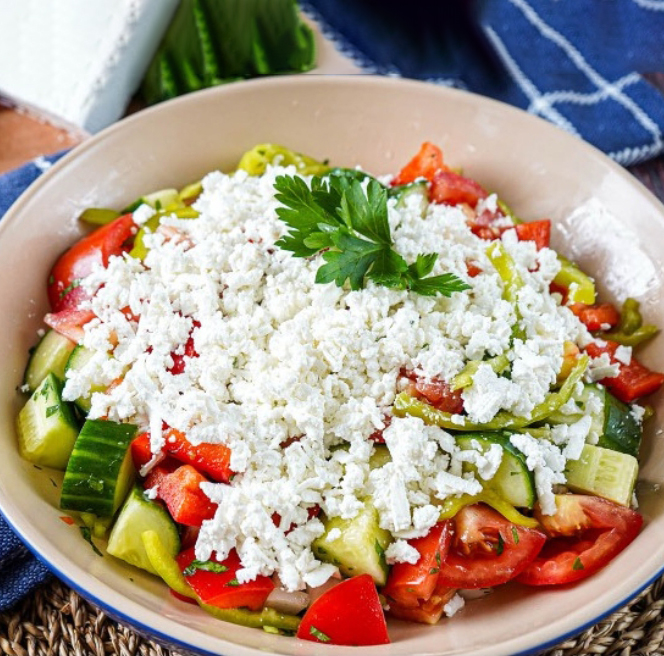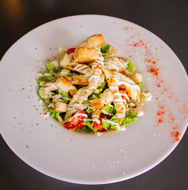 (200g pilećeg filea, cherry paradajz, krastavac, paprika, zelena salata, kuhano jaje, sir, dressing)